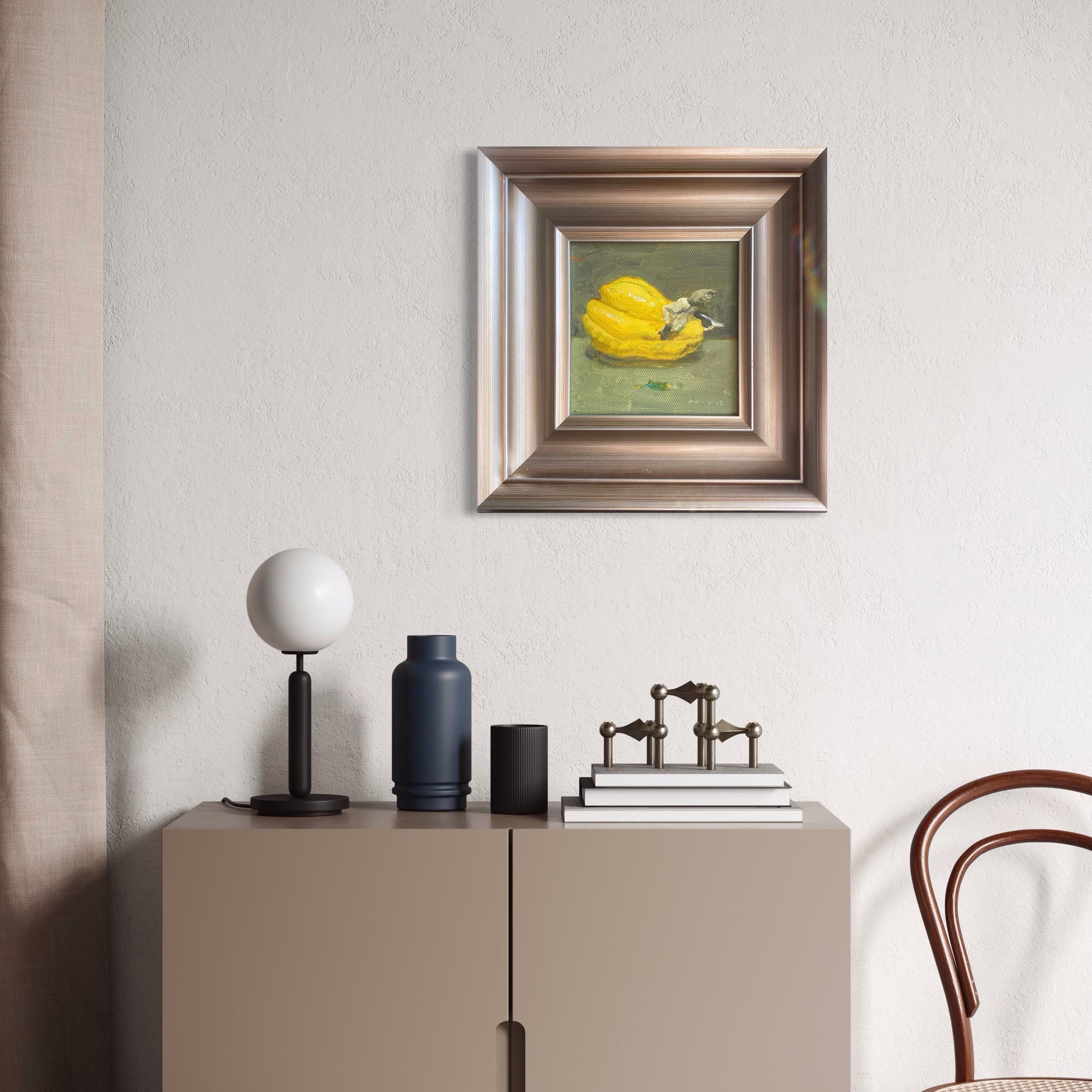 This framed botanical still life pairs beautifully with Mediterranean-inspired, modern, or Scandinavian interiors. It works especially well in kitchens, dining spaces, or quiet living areas where subtle color and form add warmth and character.
