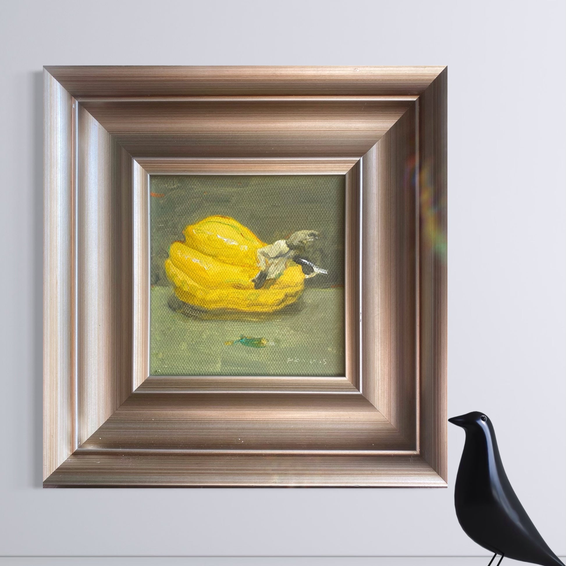 The painting is professionally framed and ready to hang. Its compact 29 × 29 cm square format makes it an ideal choice for collectors seeking intimate, original artworks, as well as for refined interiors such as kitchens, dining areas, or thoughtfully curated gallery walls.